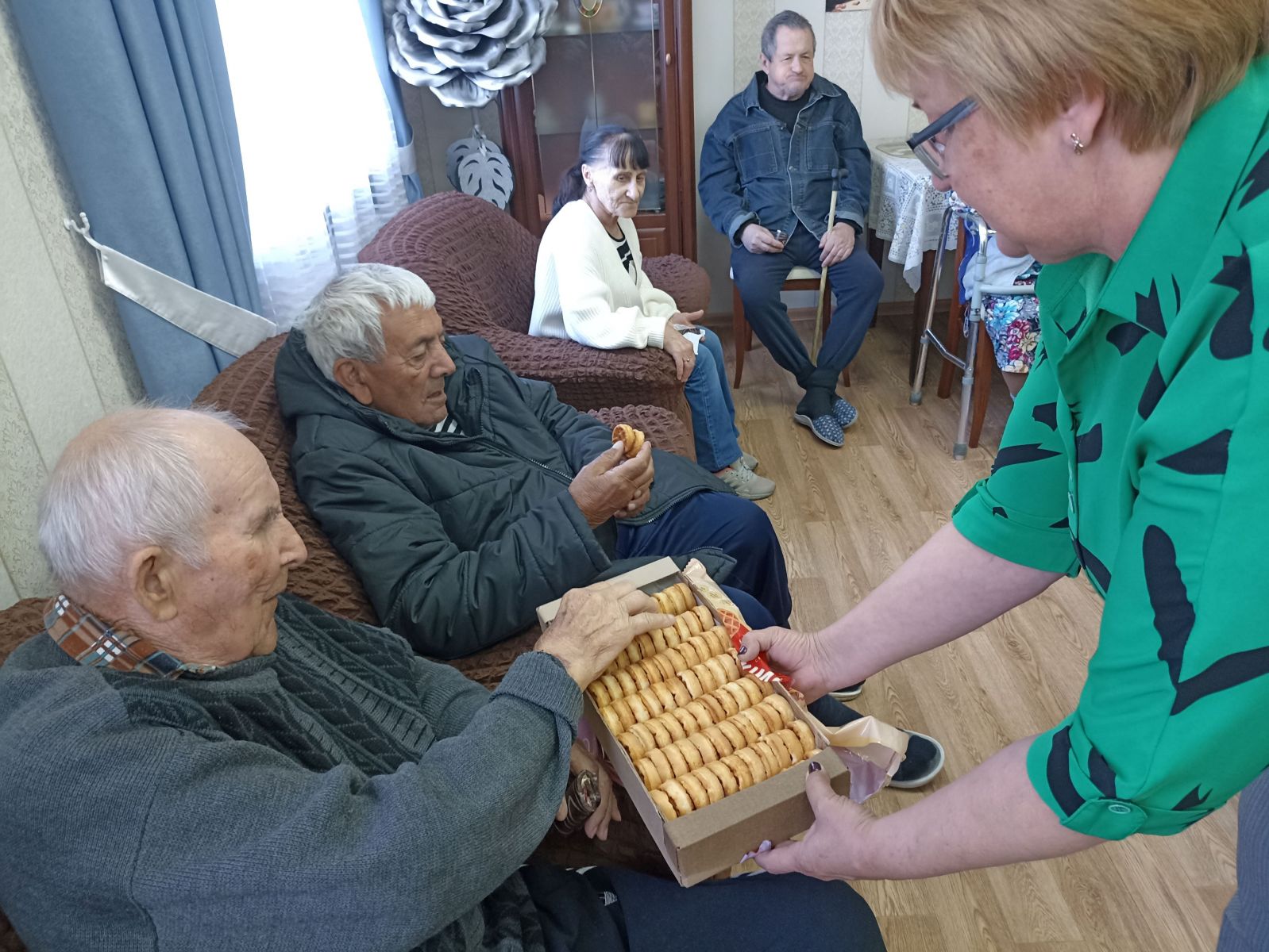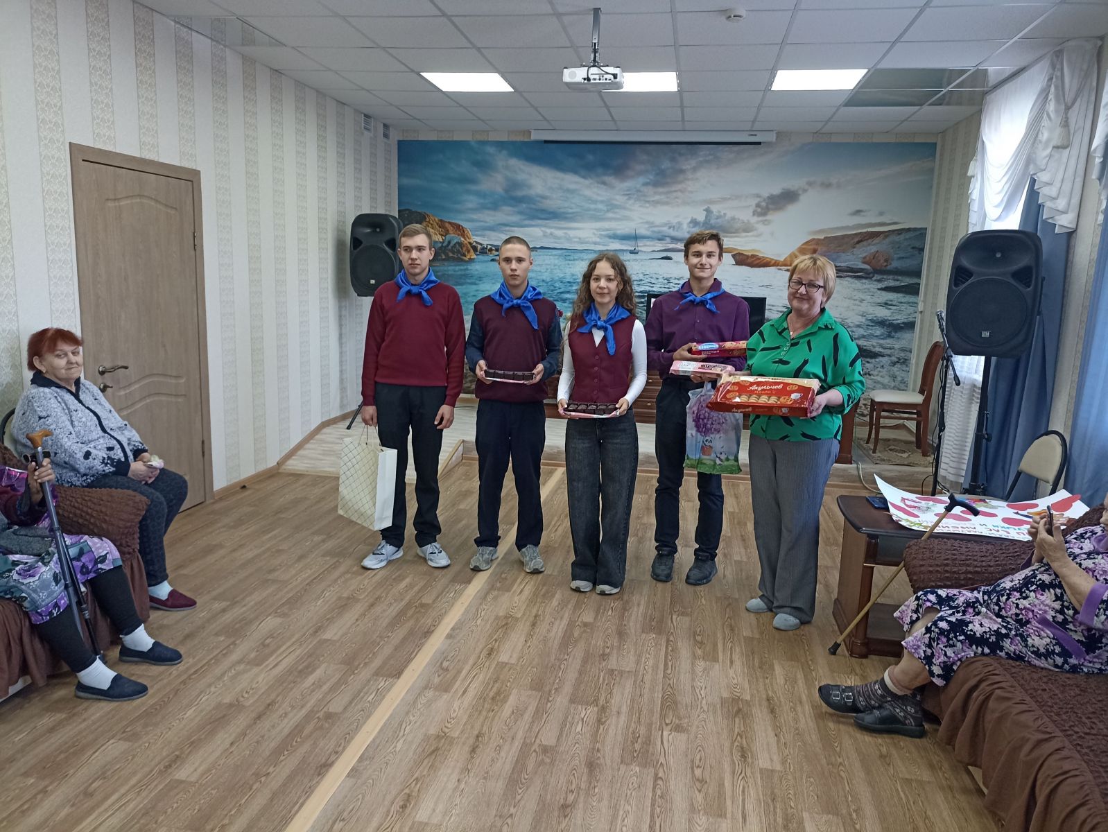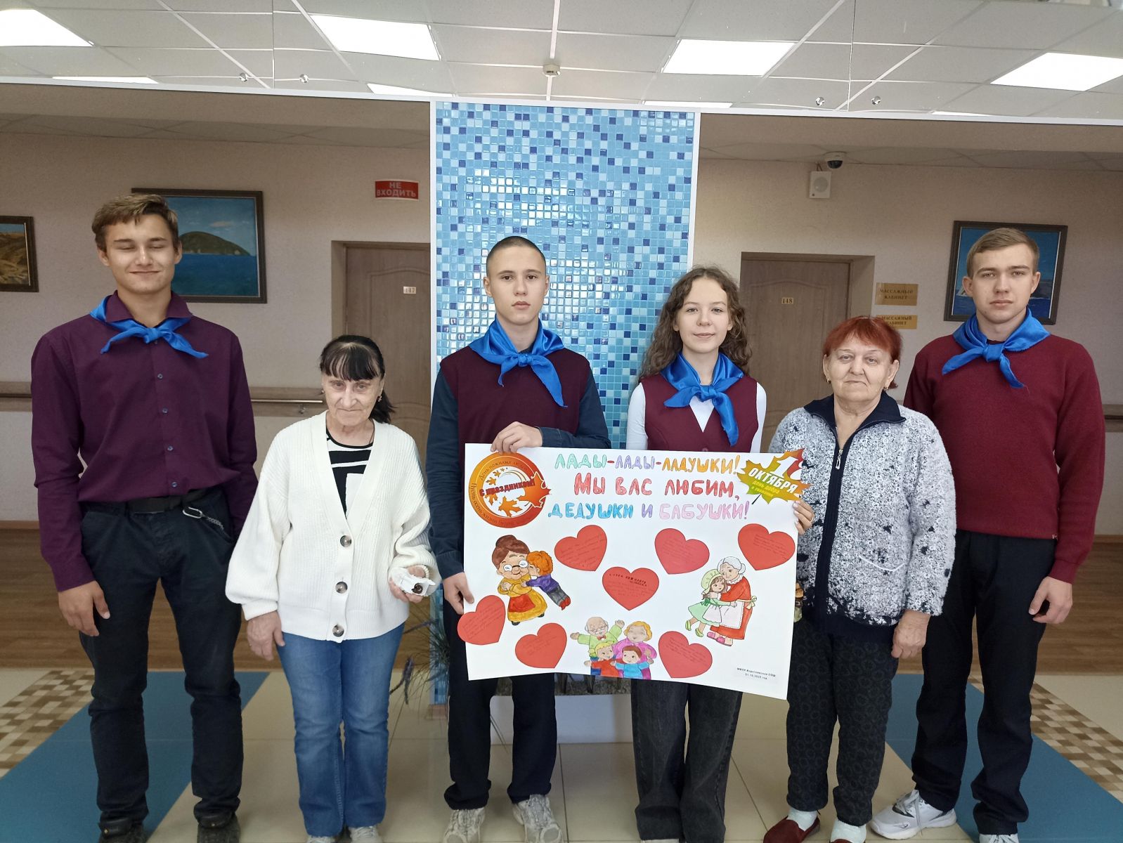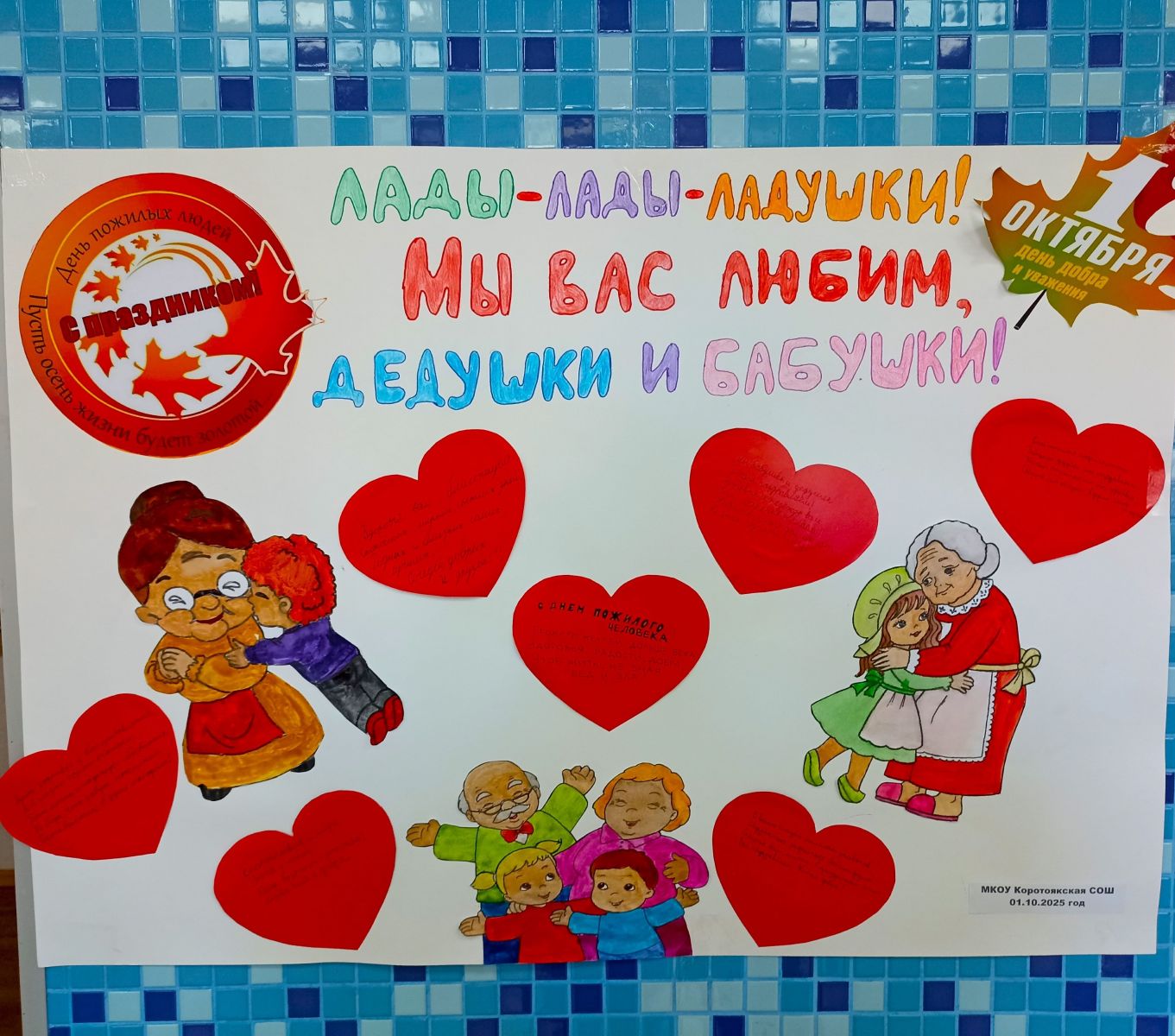 1 октября 2025 года активисты Движения Первых и волонтёрского объединения «Искра», «Орлята России», ученики Коротоякской школы приняли участие во Всероссийских акциях «Время старших» и «Внуки по переписке». Ребята своими руками изготовили праздничный плакат, принесли сладкие подарки и передали их проживающим пансионата.