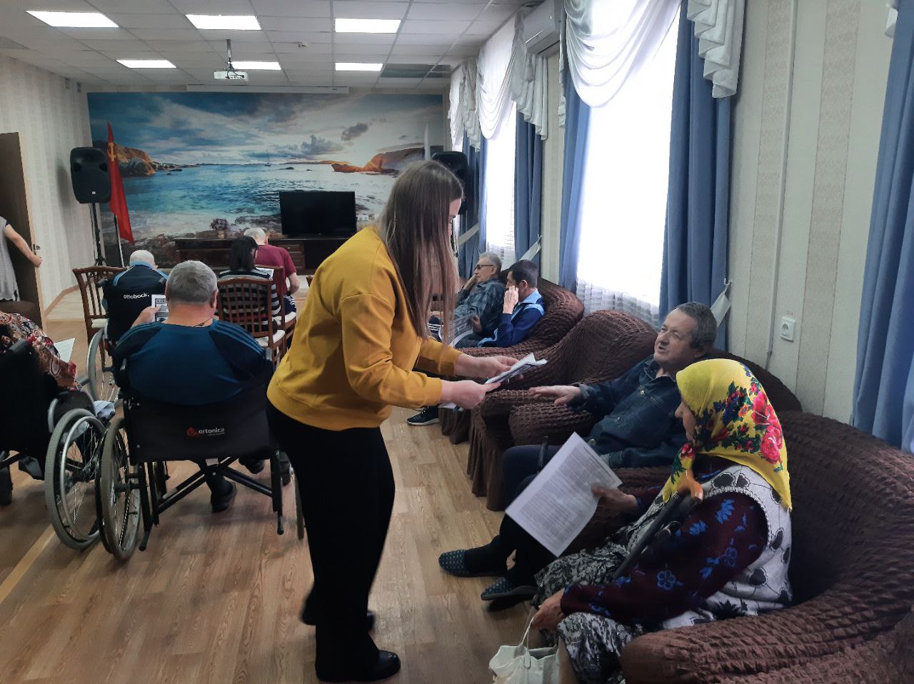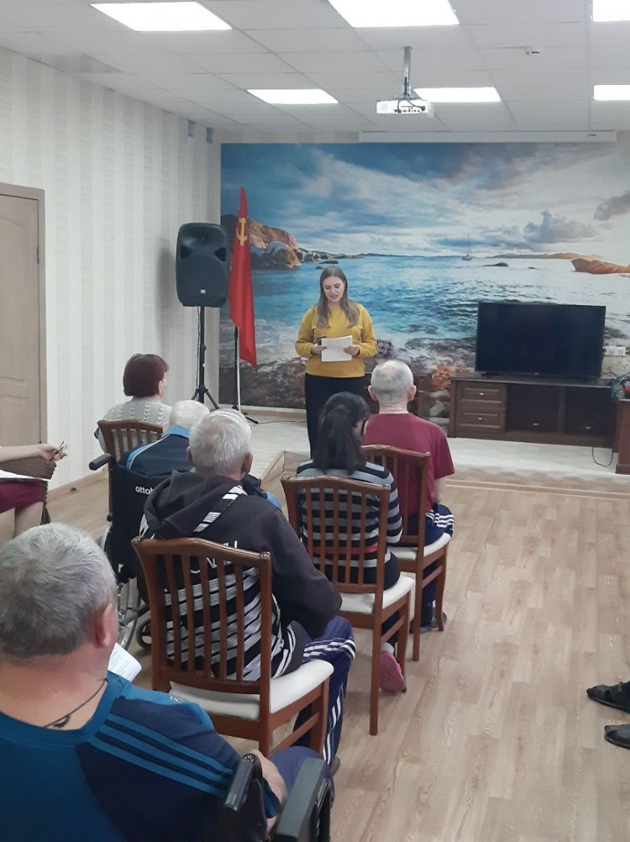 На лекции присутствовали: посетители отделения дневного пребывания, проживающие и сотрудники БУ ВО «Пансионат «Коротоякский».